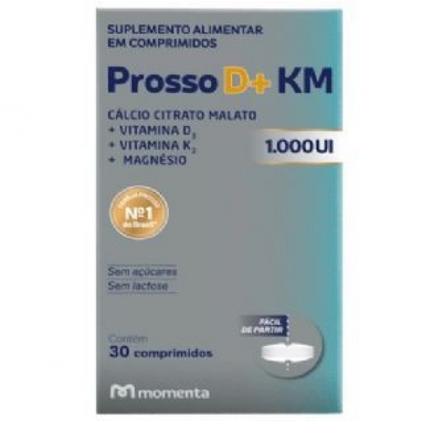 Informações do produto: Prosso D+ KM Momenta 1.000UI, caixa com 30 comprimidos